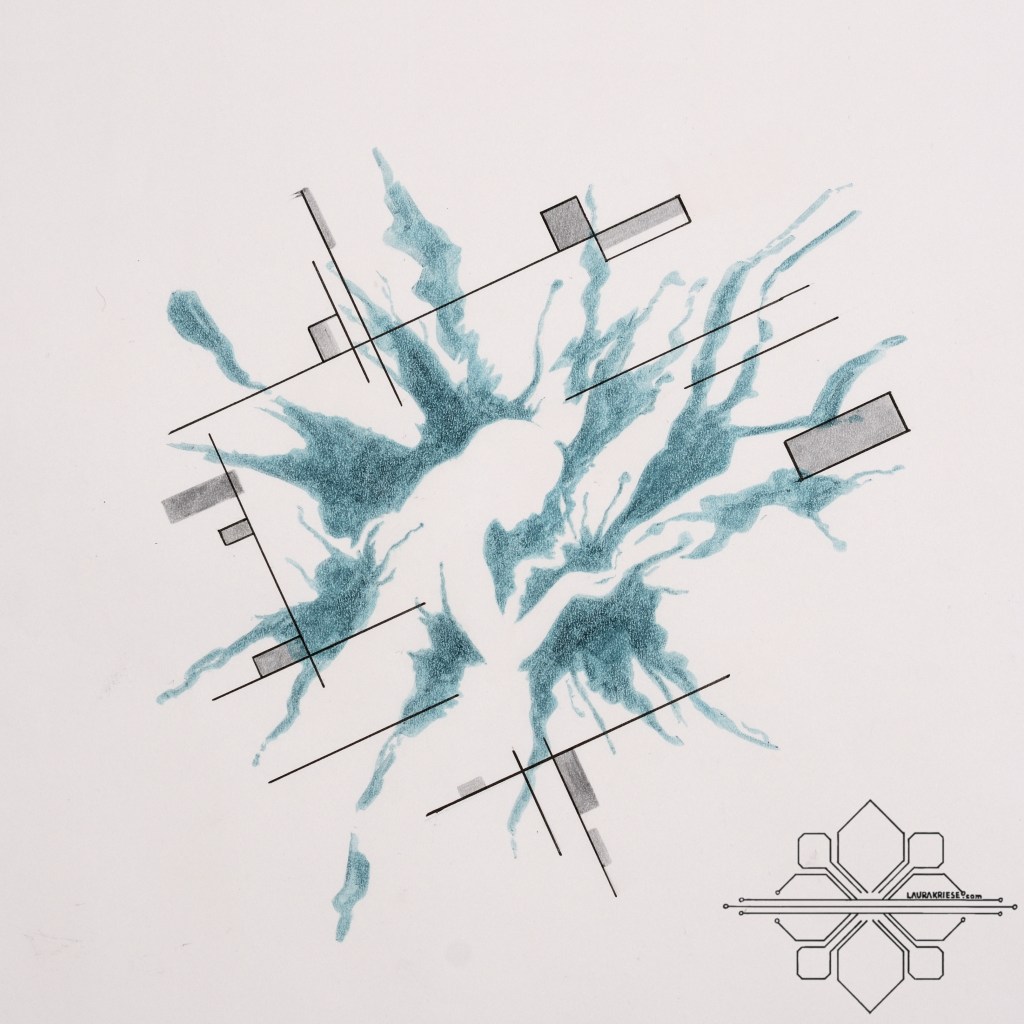 Spannungsfeld aus Geraden, Farbflächen und Ungenauigkeiten, die mal